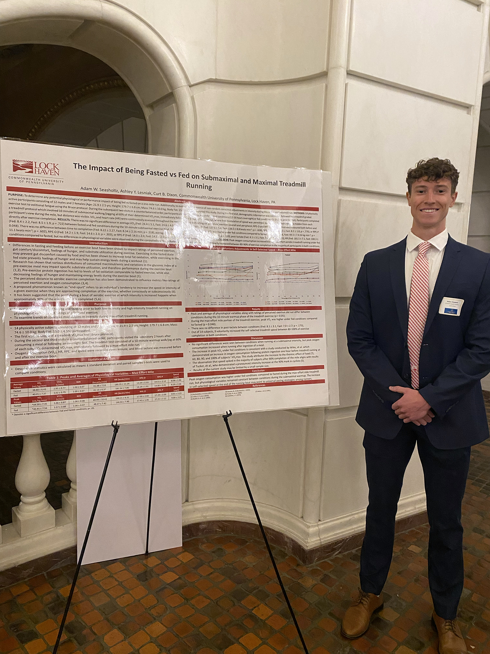 Seasholtz, a health science major, presented his research on the impact of being fasted versus fed on submaximal and maximal treadmill running.