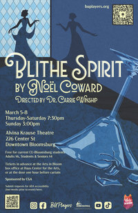 Bloomsburg, PA (02/25/2026) — The Bloomsburg University Players at Commonwealth University-Bloomsburg will stage Blithe Spirit by Noel Coward in March. The play will run from March 5 to 8 at the Alvina Krause Theatre, located at 226 Center Street, Bloomsburg. Performances are Thursday, Friday, and Saturday at 7:30 p.m., and Sunday at 3 p.m.